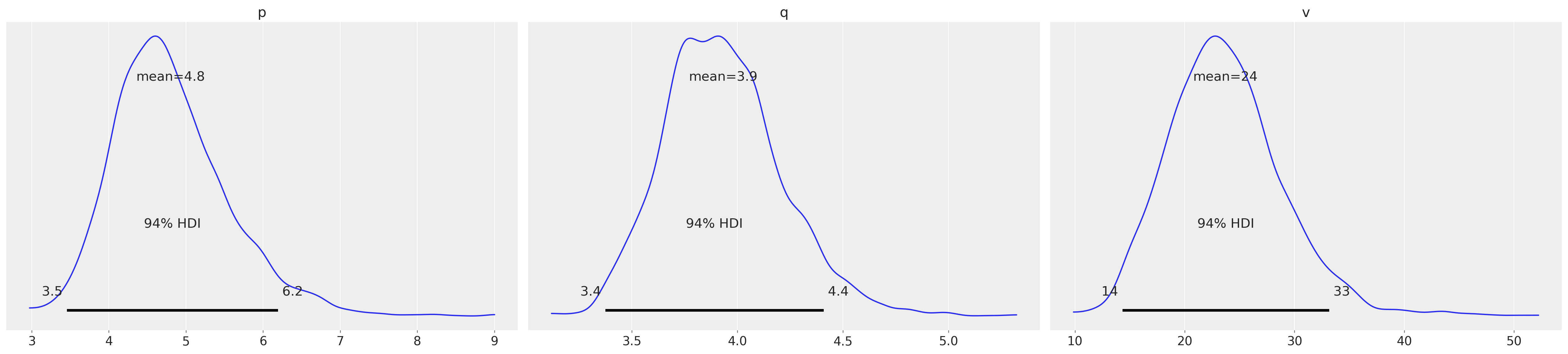| q | 3.933 | 0.280 | 3.374 | 4.409 | 0.010 | 0.008 | 893.0 | 928.0 | 1.0 |