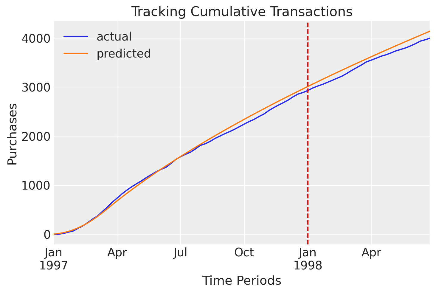 This dataset is an example of continuous time, non-contractual transactions because it comprises purchases from an online music store. PyMC-Marketing provides several models for this use case: