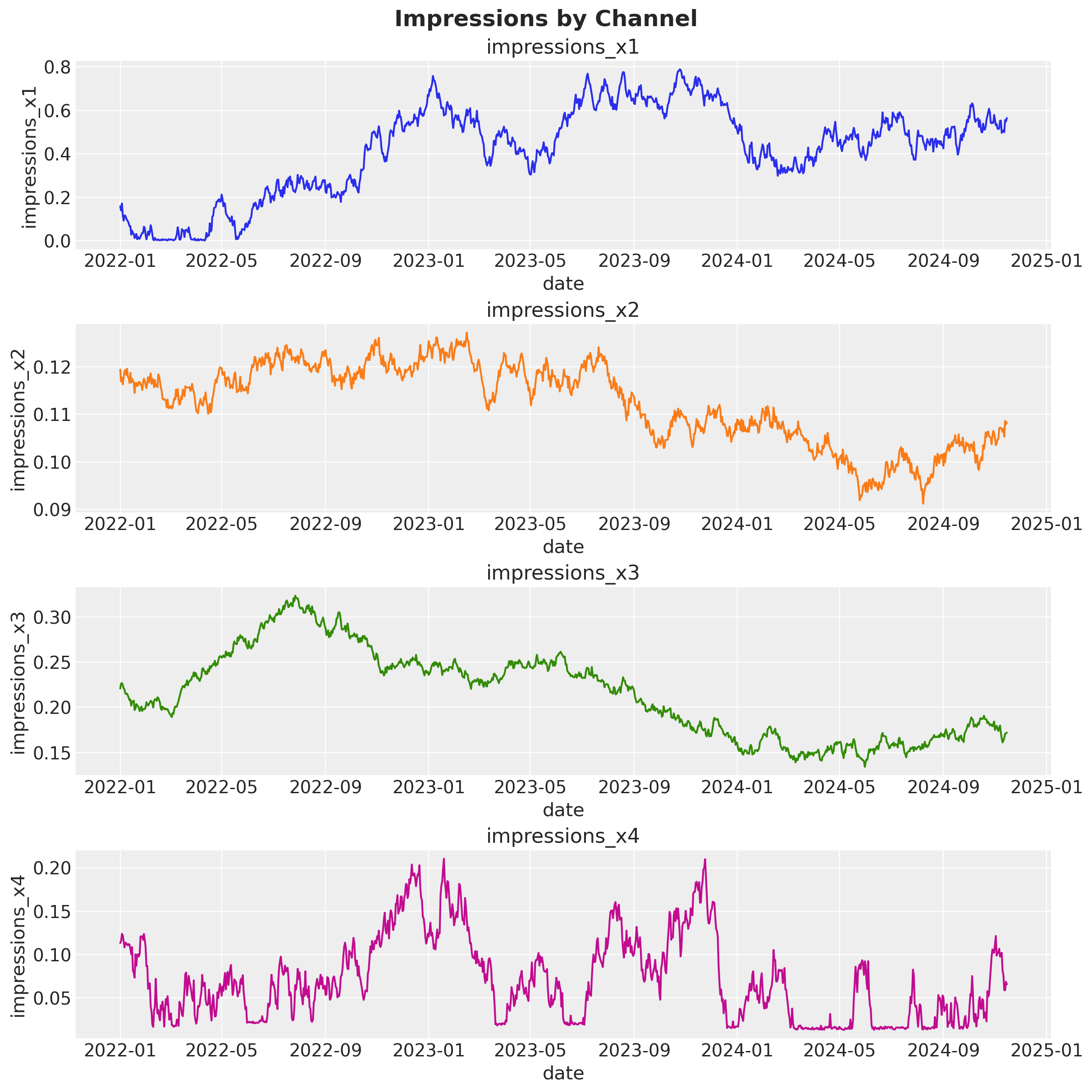 channel_columns = [f"impressions_x{i}" for i in range(1, 5)]