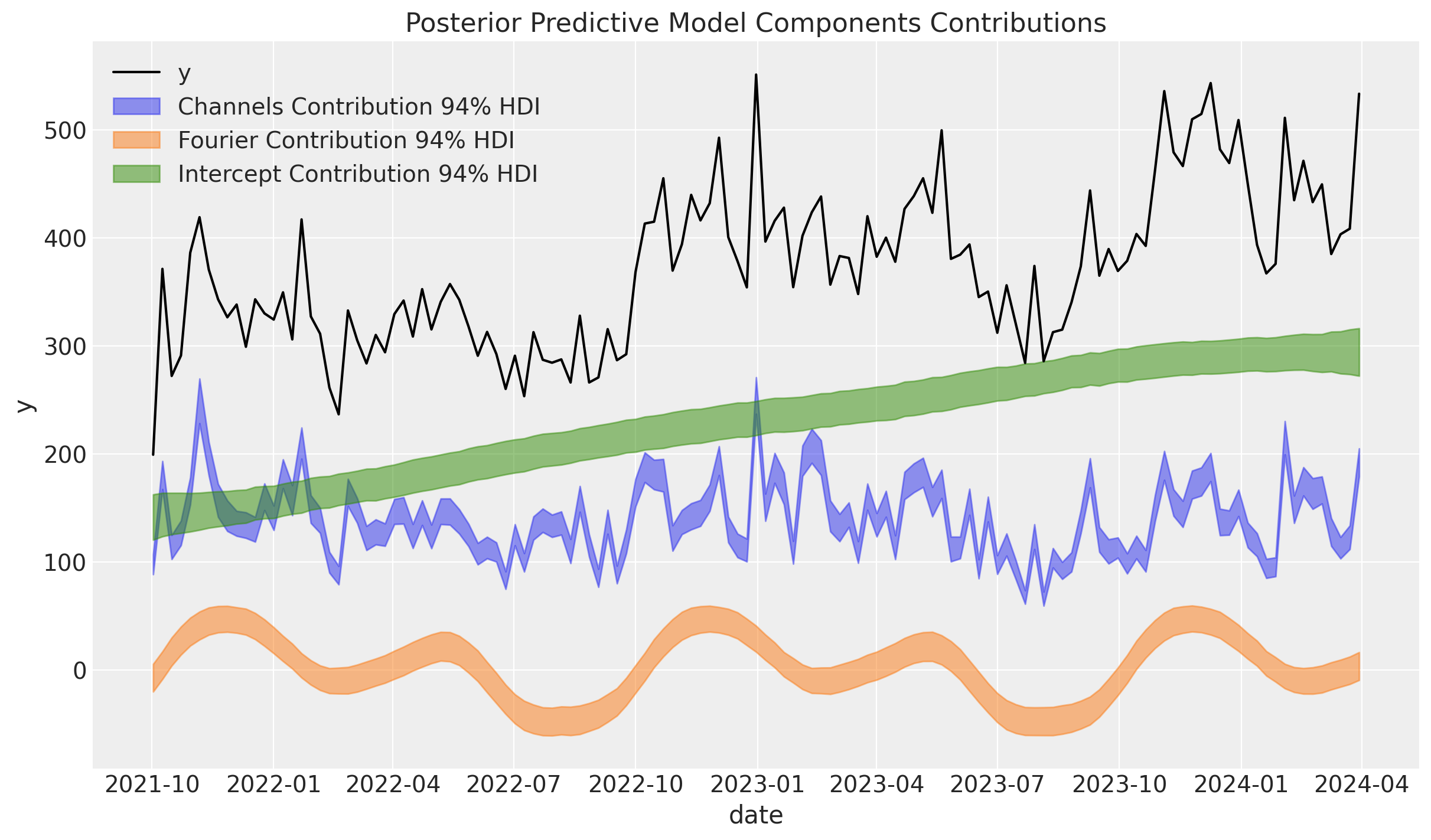 /Users/juanitorduz/Documents/pymc-marketing/pymc_marketing/mmm/time_slice_cross_validation.py:32: UserWarning: The pymc_marketing.mmm.builders module is experimental and its API may change without warning.