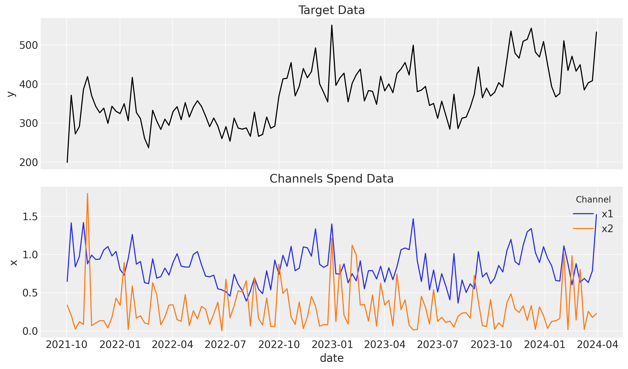 Before jumping into the model, let’s plot the target data and the channels data to understand it better.
